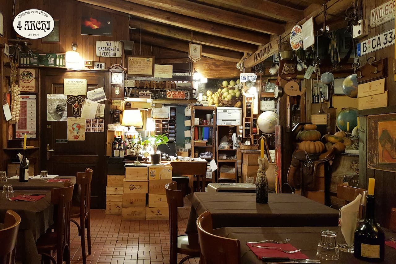 L'osteria 4 Archi, attiva dal 1995, abbraccia una filosofia di cucina incentrata sulla scelta di materie prime locali, presìdi Slow Food, promozione del territorio e piatti della tradizione.